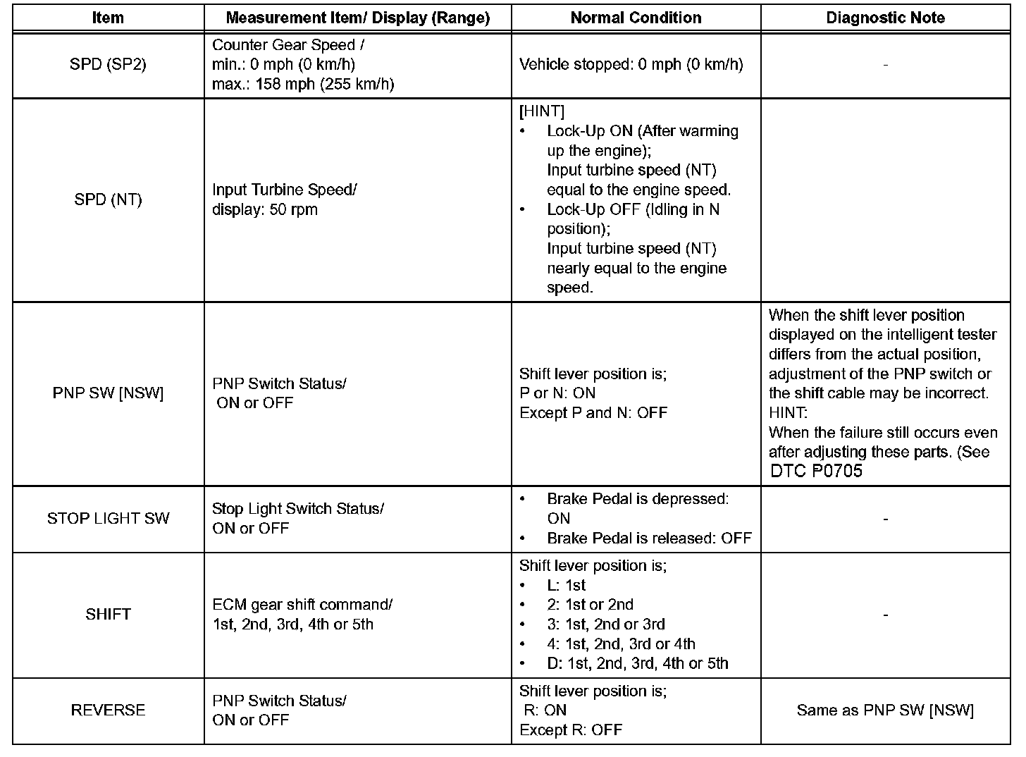 HINT: According to the DATA LIST displayed on the intelligent tester, you can read the values of components, such as the switches, sensors and actuators, without removing any parts. Reading the DATA LIST as a first step of troubleshooting is one method of shortening labor time.