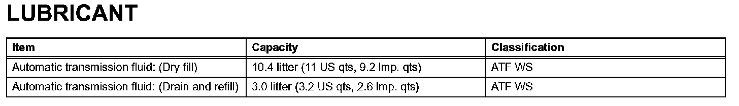 Automatic Transmission - Lubricant: