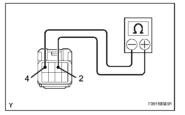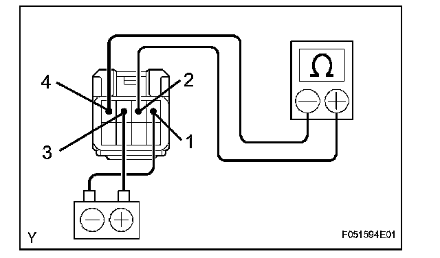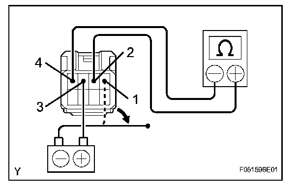 (e) Using an ohmmeter, check that there is resistance between terminals 2 and 4 when the battery lead is disconnected.