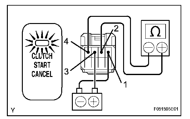 (d) Check that the indicator light comes on and there is resistance between terminals 2 and 4 when the switch is pressed.