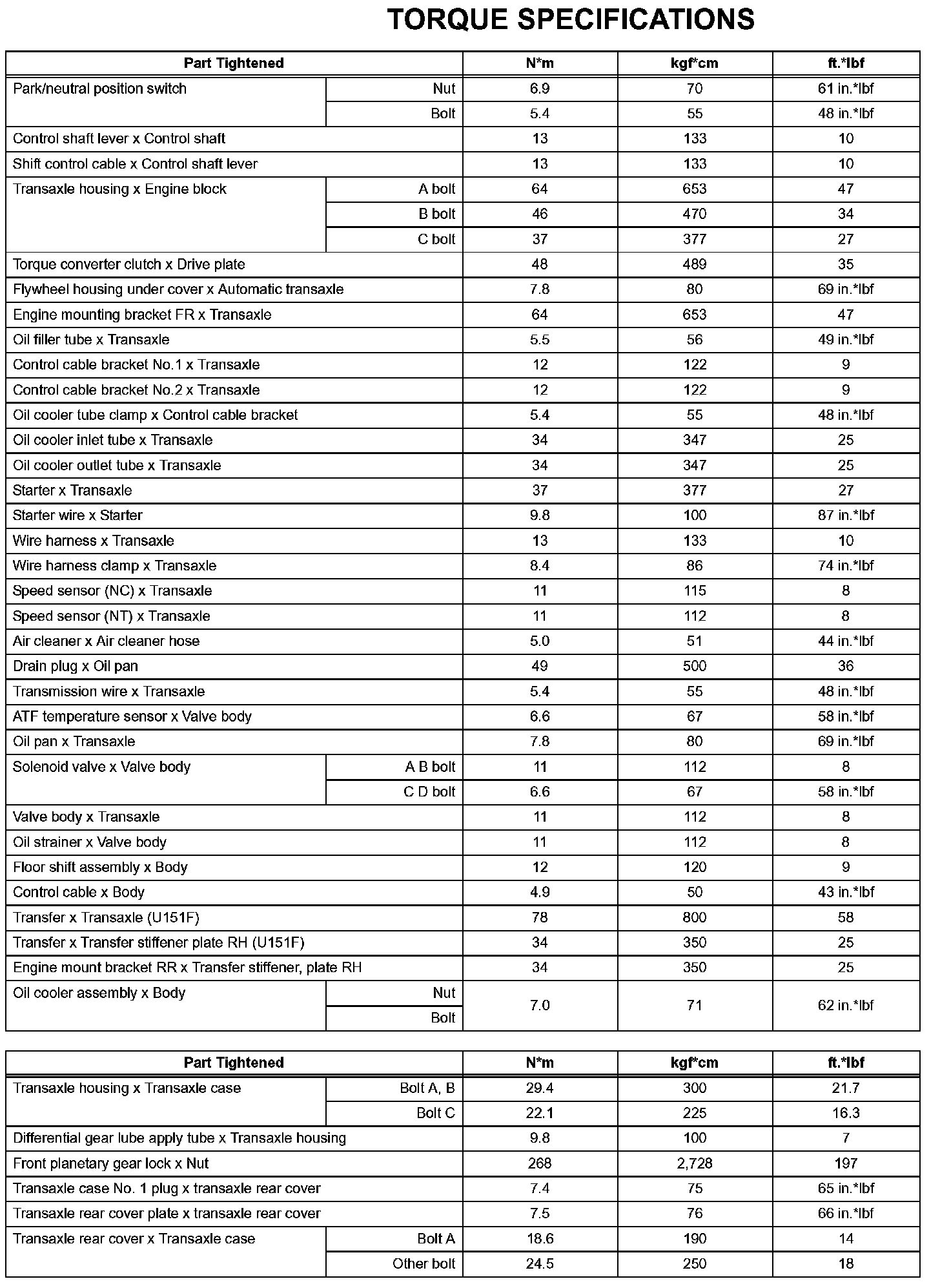 Automatic Transaxle - Torque Specifications (Part 2):