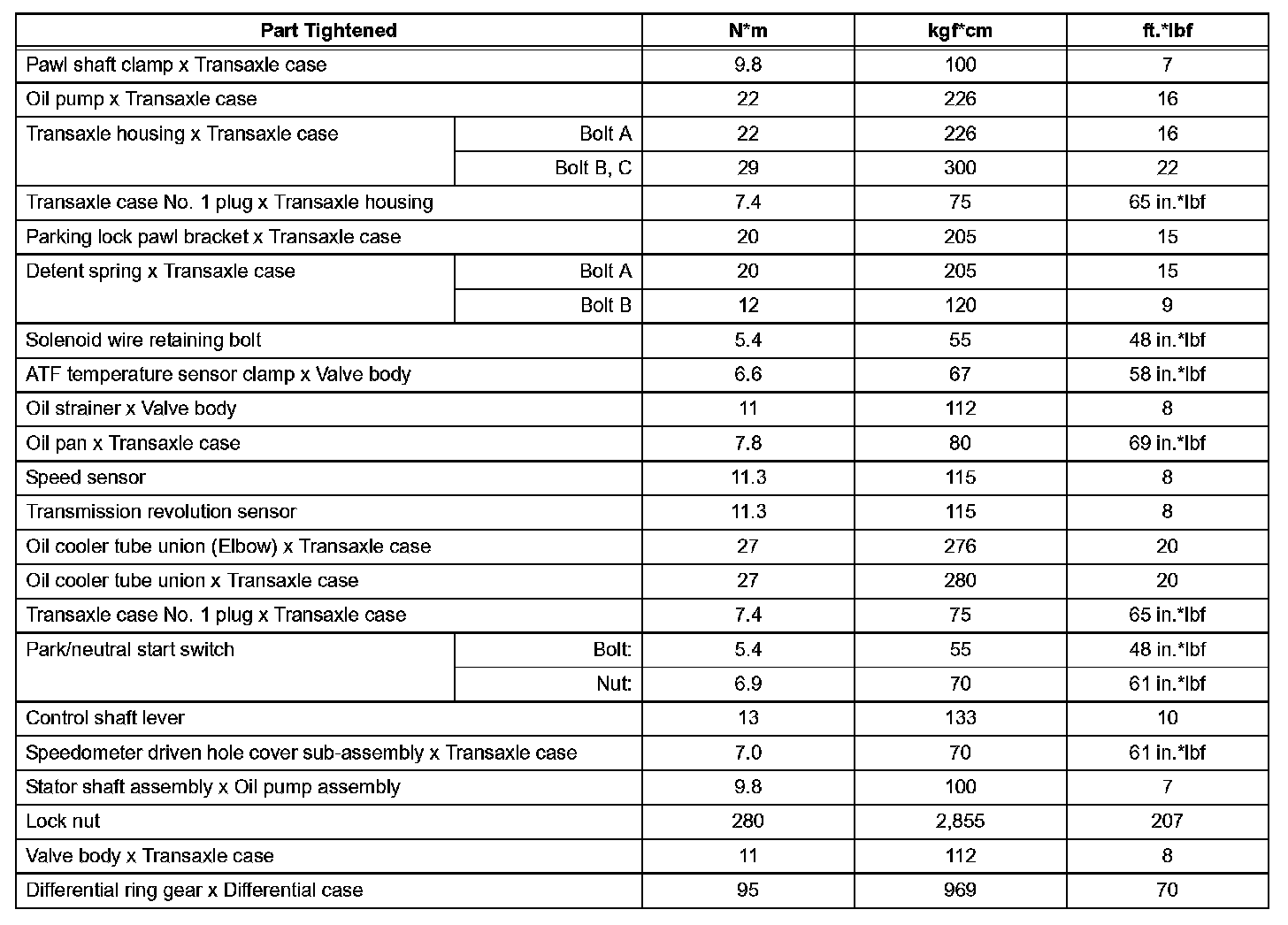 Automatic Transaxle - Torque Specifications (Part 1):