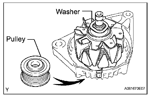 a. Install the pulley to the rotor shaft by tightening the generator pulley nut by hand.