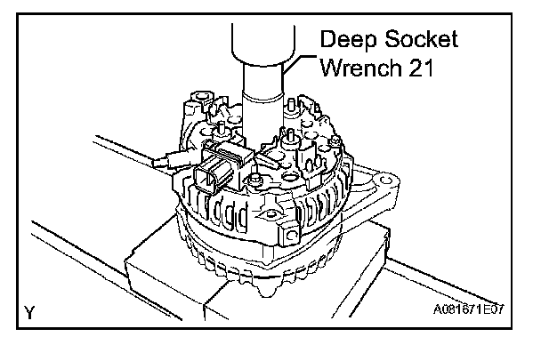 a. Using deep socket wrench 21 and a press, press in the coil carefully.