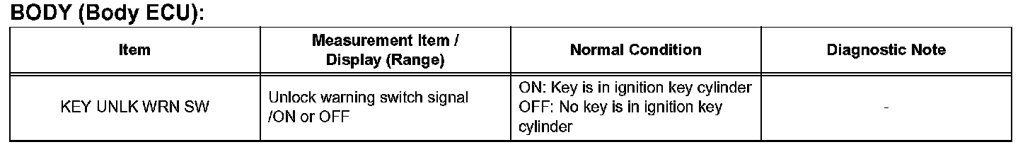 READ DATA LISTHINT: Using the intelligent tester's DATA LIST allows switch, actuator and other item values to be read without removing any parts. Reading the DATA LIST early in troubleshooting is one way to save time.