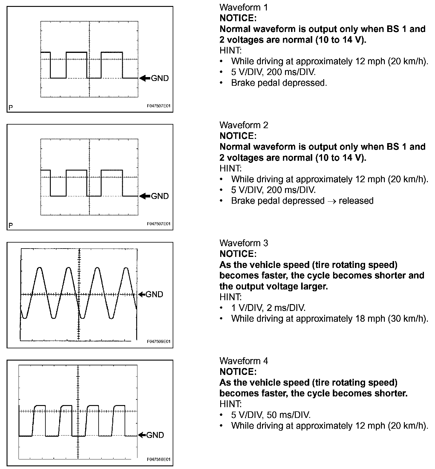 c. Using an oscilloscope, check that the pulse generates between each terminal or between each terminal and the body ground.