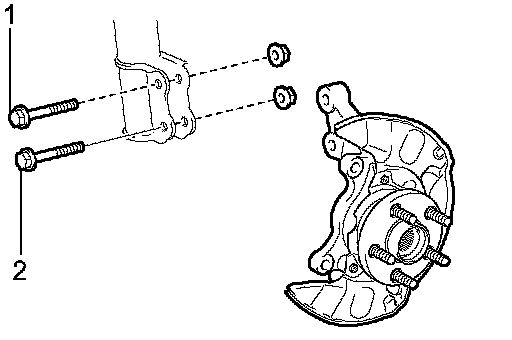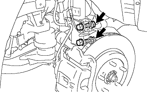 b. Remove the 2 nuts on the lower side of the front shock absorber.