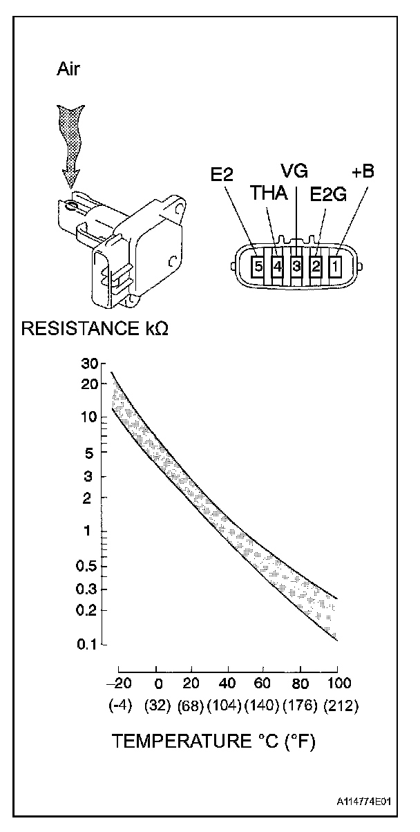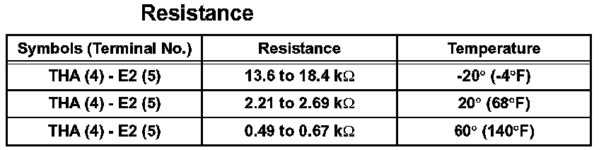1. Using an ohmmeter, measure the resistance between terminals 4 (THA) and 5 (E2).