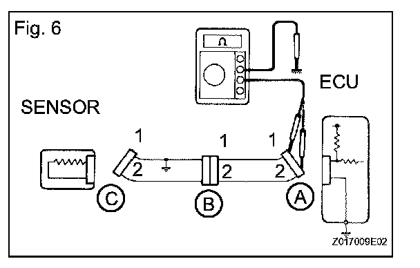 1. Disconnect connectors A and C and measure the resistance.