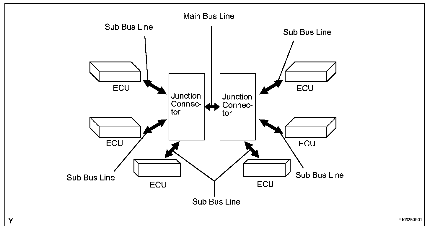 - The CAN uses the multi star style bus connection. The 2 junction connectors are connected with a main bus line. The junction connector extends a sub bus line and enables communication between all the connected ECUs.