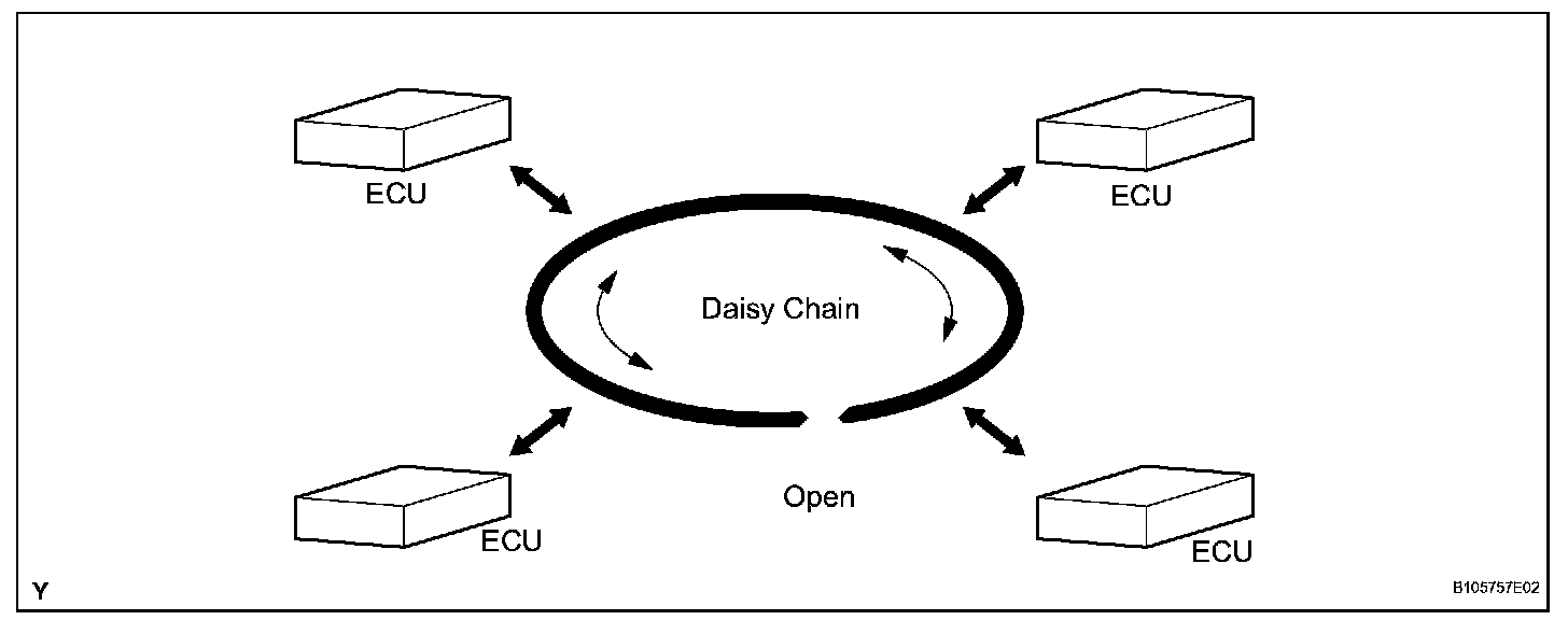 1. The BEAN uses a ring and bus style of network to connect ECUs. This style of communication method is called a daisy chain. In a daisy chain, communication can be maintained even if the network has an open circuit.