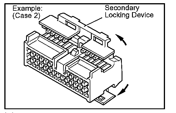 b. Use a special tool or the terminal pick to unlock the secondary locking device or terminal retainer.