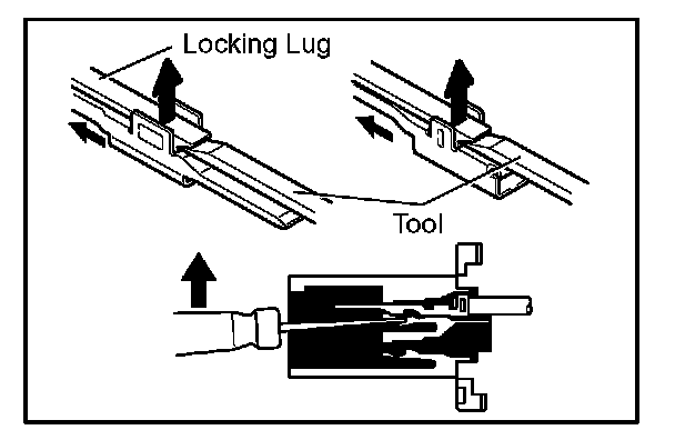 c. Release the locking lug from terminal and pull the terminal out from rear.