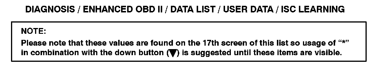 DIAGNOSIS / ENHANCED OBD II / DATA LIST / USER DATA / ISC LEARNING
