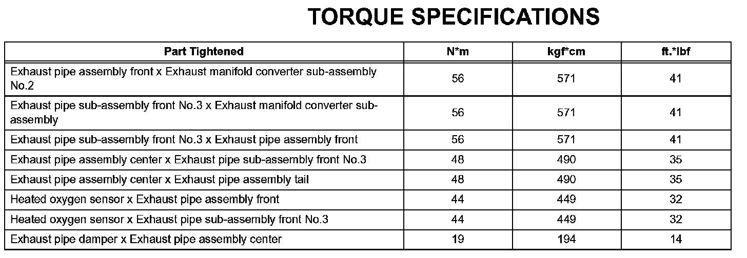 Exhaust - Torque Specifications: