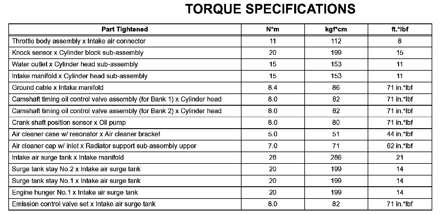 Engine Control System - Torque Specifications: