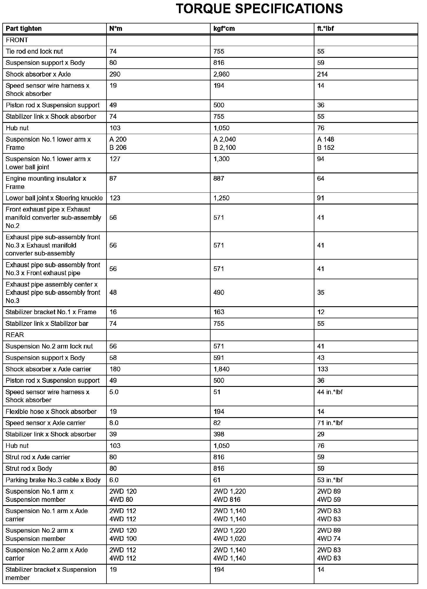 Suspension - Torque Specifications (Part 1):