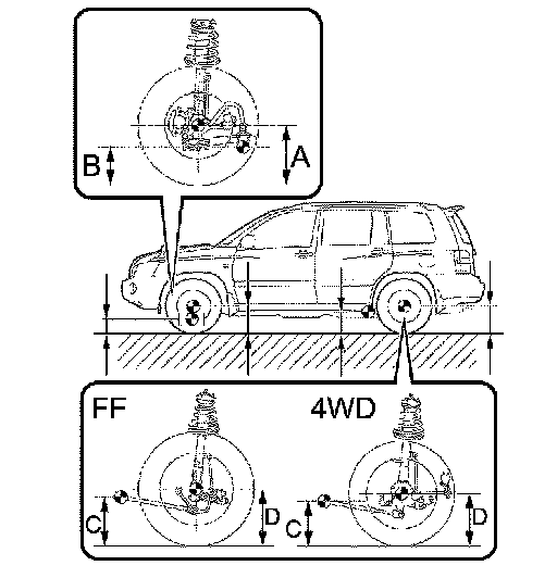 HINT: Bounce the vehicle at the corners up and down to stabilize the suspension and inspect vehicle height.