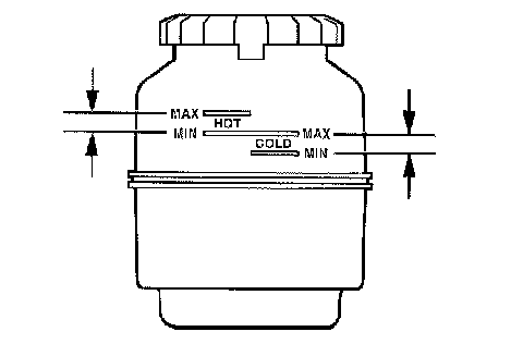 HINT: When hot, check that the fluid level is within the HOT LEVEL range on the reservoir. If the fluid is cold, check that it is within the COLD LEVEL range.