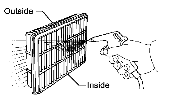 c. Clean the filter with compressed air. First blow from the inside thoroughly, and then blow from the outside of the filter.