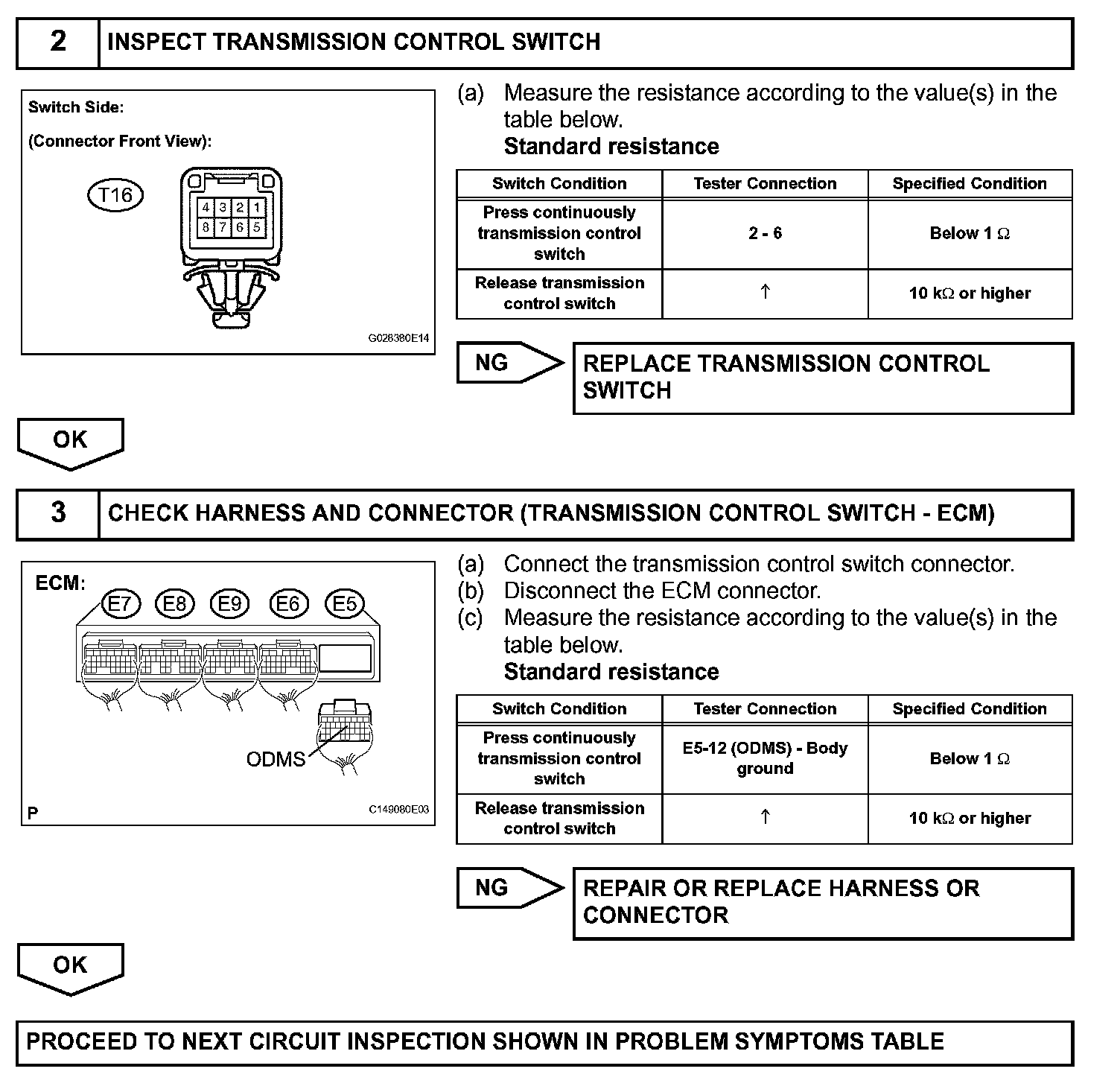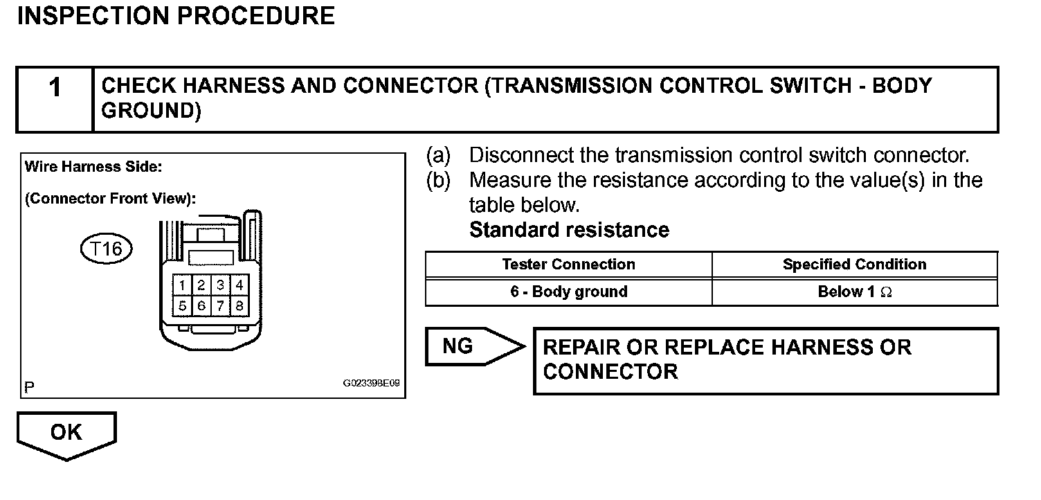 The O/D main switch (transmission control switch) is a momentary type switch. When pressing the O/D main switch, the O/D OFF indicator light lights up and the ECM prohibits shifting into O/D, and when pressing it once again, the O/D OFF indicator light goes off and the ECM allows shifting into O/D. Turning the IG switch OFF will reset the O/D OFF indicator light.