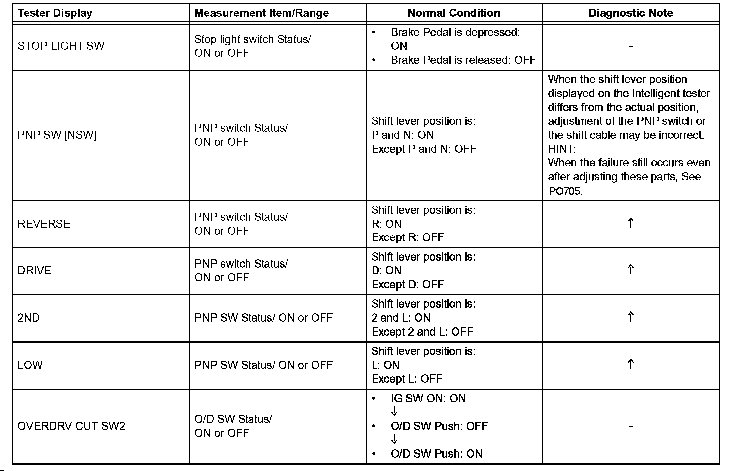 HINT: According to the DATA LIST displayed by the intelligent tester, you can read the value of the switch, sensor, actuator and so on without parts removal. Reading the DATA LIST as the first step of troubleshooting is one method to shorten labor time.
