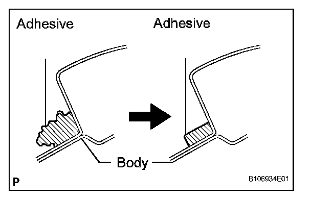 NOTICE: Leave as much adhesive on the vehicle body as possible when removing the glass.