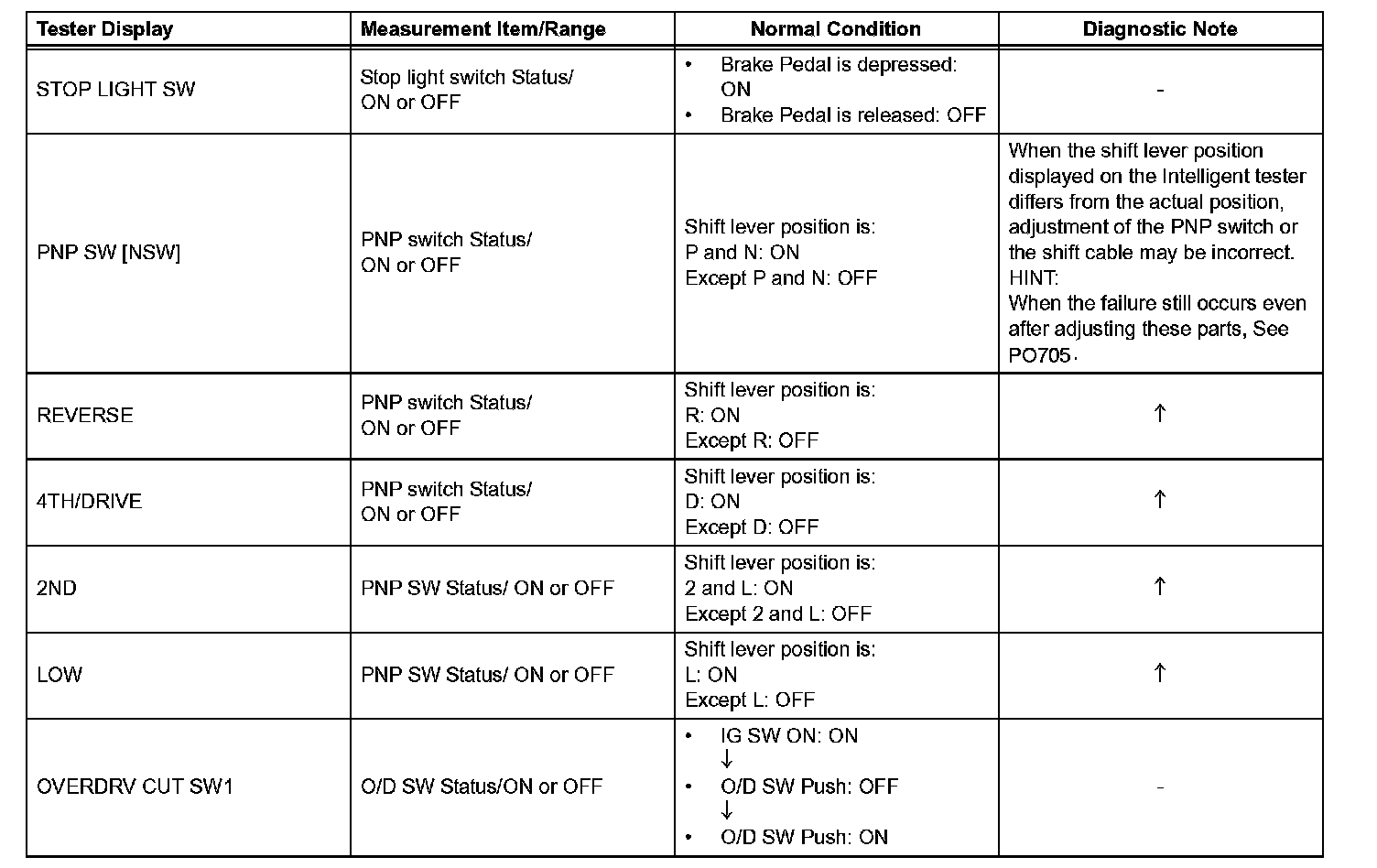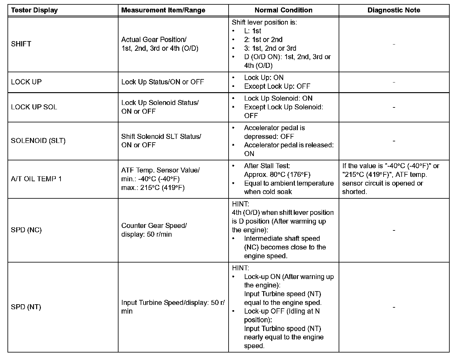 HINT: According to the DATA LIST displayed by the intelligent tester, you can read the value of the switch, sensor, actuator and so on without parts removal. Reading the DATA LIST as the first step of troubleshooting is one method to shorten labor time.