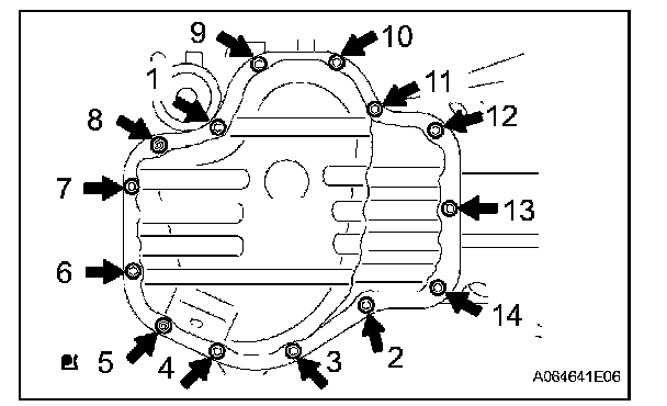 Uniformly tighten the 12 bolts and 2 nuts in the sequence shown in the illustration.