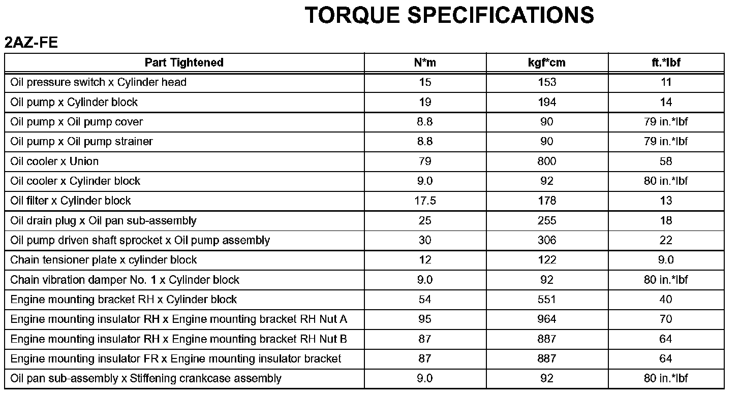 Lubrication - Torque Specifications:
