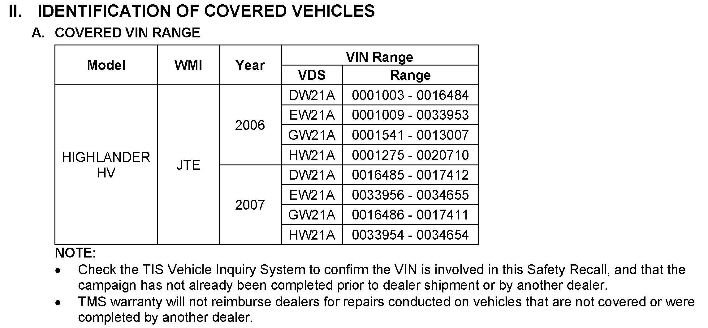 II. Identification of Covered Vehicles