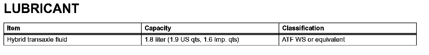 Hybrid Transmission / Transaxle - Lubricant: