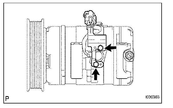 NOTE: Make sure that there is no foreign matter or oil on the compressor shaft, bolt, and clutch hub.
