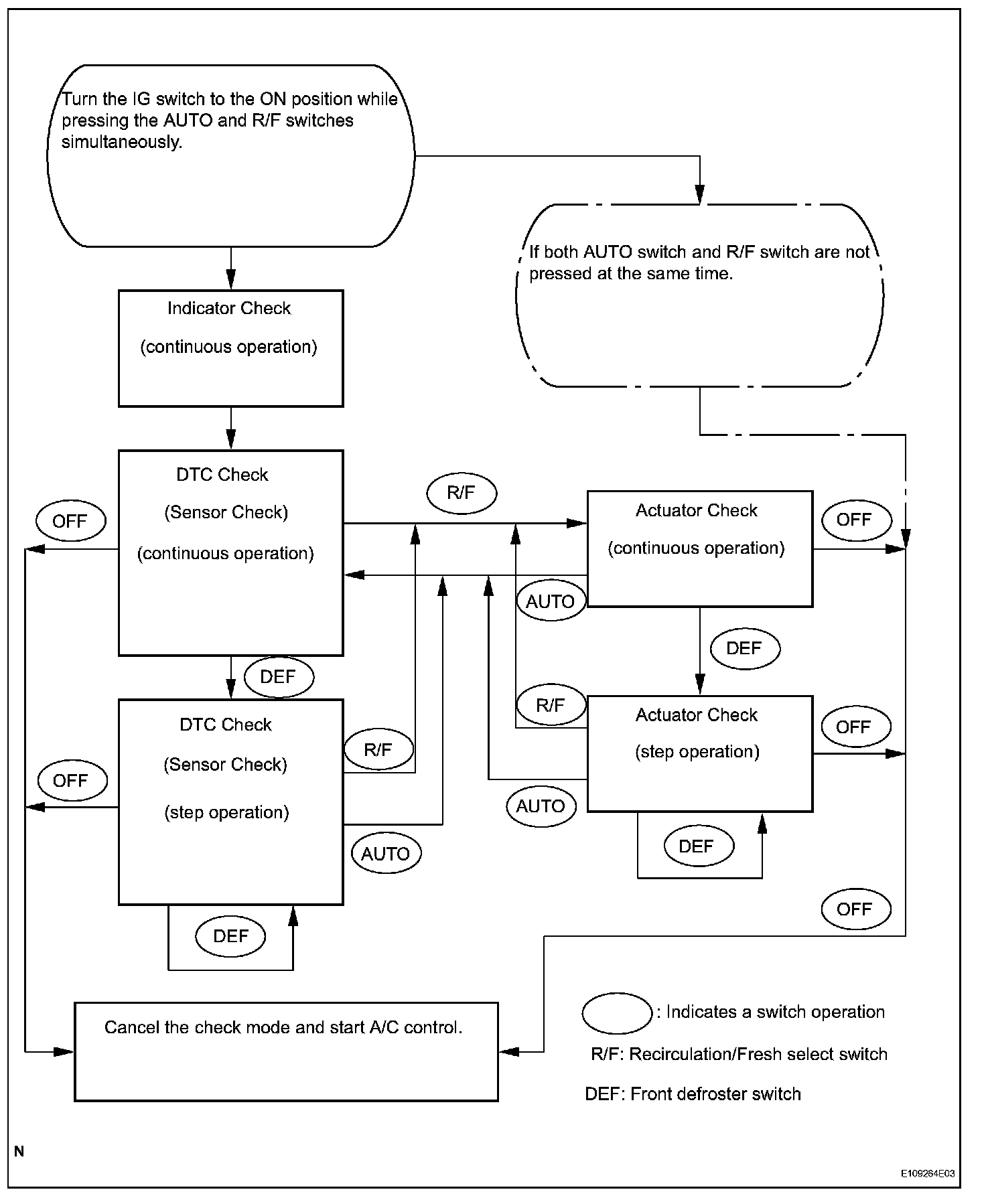 1. LIST OF OPERATION METHODSa. By operating each of the A/C control switches as shown in the diagram, it is possible to enter the diagnostic check mode.