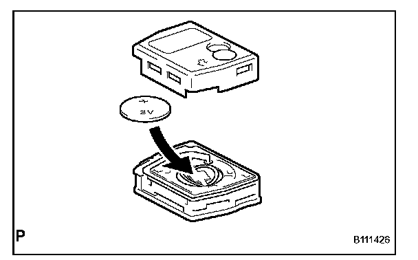 a. Install a new battery (lithium battery) with the positive (+) side up as shown in the illustration.
