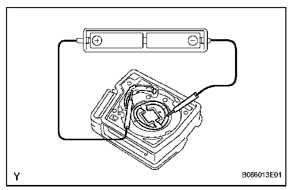 HINT: If a new or normal battery is not available, connect 2 new 1.5 V batteries in series. Connect the positive (+) battery electrode to the battery receptacle side terminal, and the negative (-) battery electrode to the bottom terminal, and apply a voltage of 3 V to the transmitter.