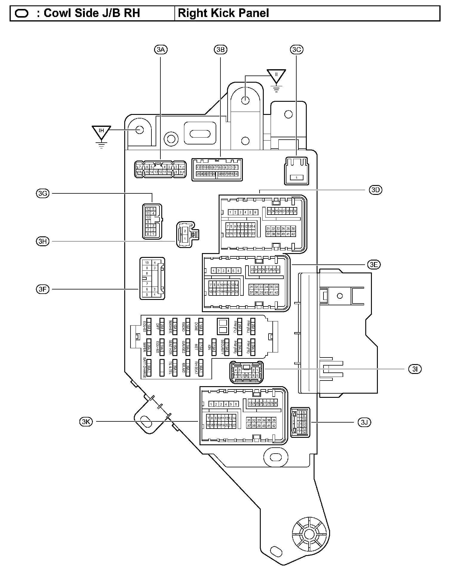 Junction Connector - Right Kick Panel: