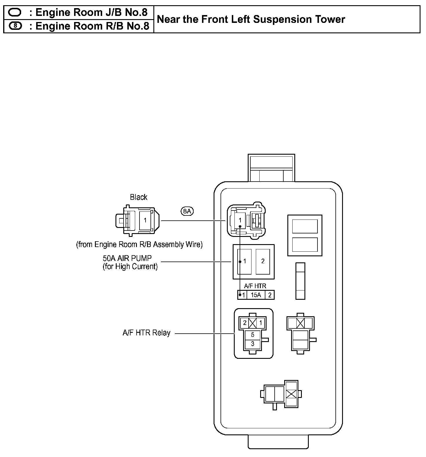 Engine Room J/B No.8, R/B No.8 - Near The Front Left Suspension Tower: