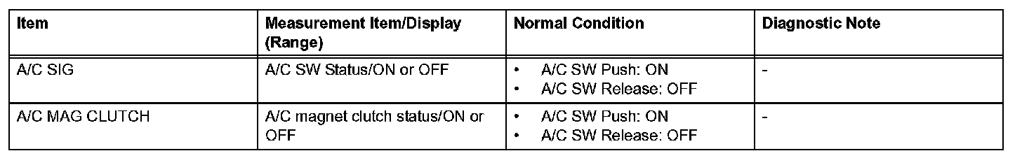DATA LISTHINT: According to the DATA LIST displayed by the intelligent tester, you can read the value of the switch, sensor, actuator and so on without parts removal. Reading the DATA LIST as a first step of troubleshooting is one of the method to shorten the labor time.