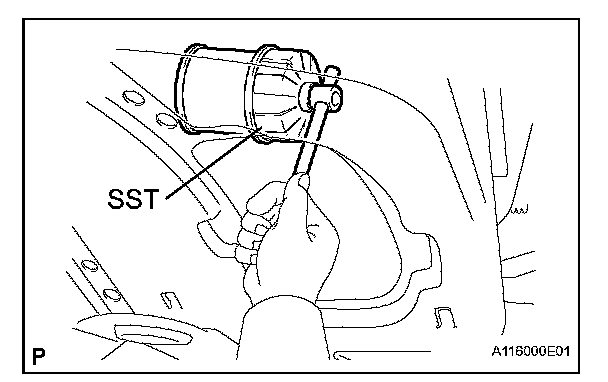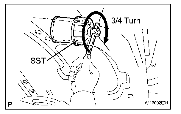 (c) Lightly screw the oil filter into place by hand. Tighten it until the gasket contacts the seat.