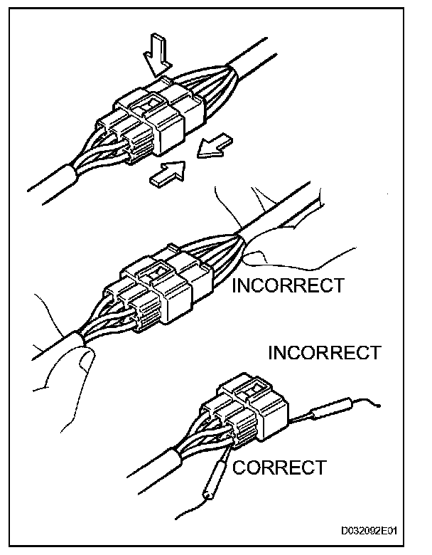 - As a waterproof connector cannot be checked from the backside, check it by connecting a sub-harness.