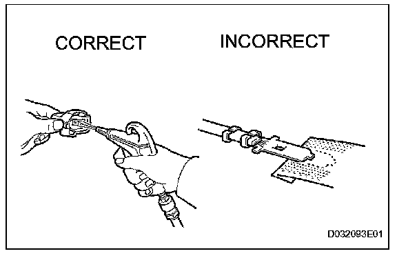 5. If checking a connector with a TOYOTA electrical tester, check the connector from the backside (harness side) using a mini test lead.