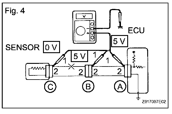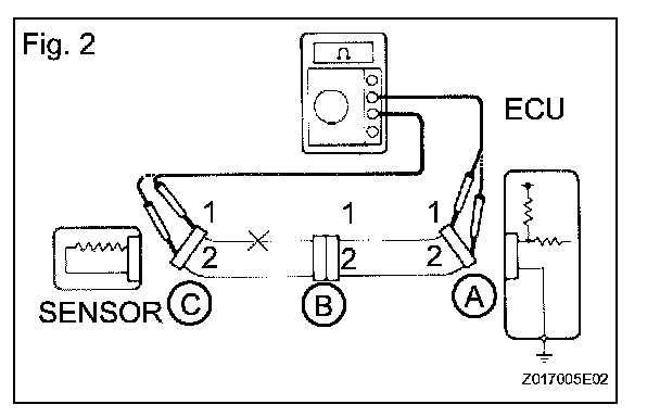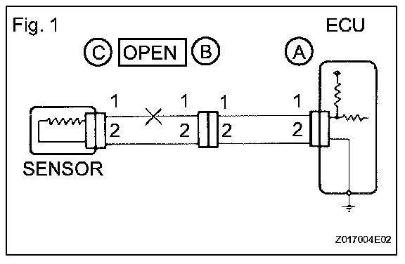 CHECK FOR OPEN CIRCUITa. For an open circuit in the wire harness in Fig. 1, check the resistance or voltage, as described.