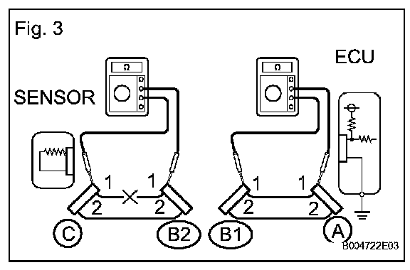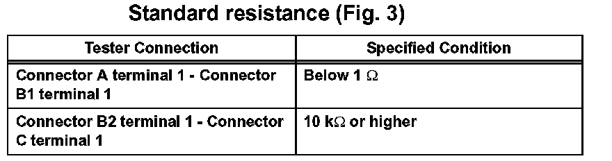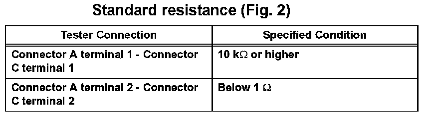 1. Disconnect connectors A and C and measure the resistance between them.