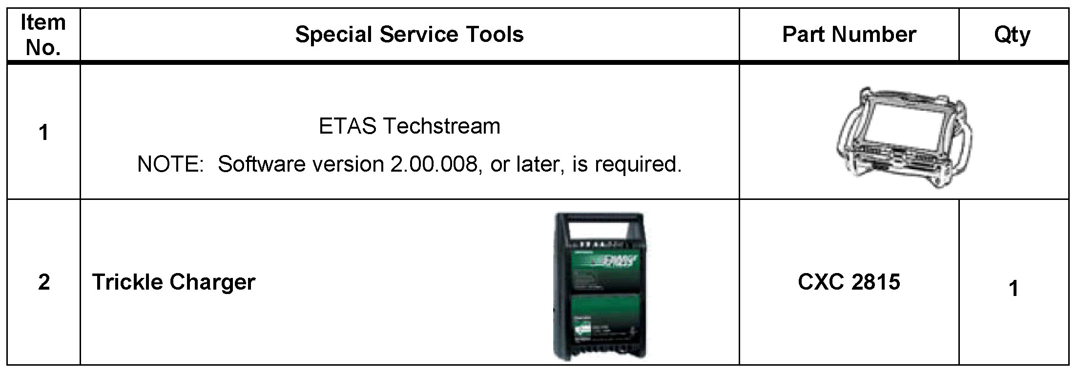 Verify the vehicle is connected to a battery charger before continuing - If battery voltage falls below 11.4 volts, ECU damage may occur.