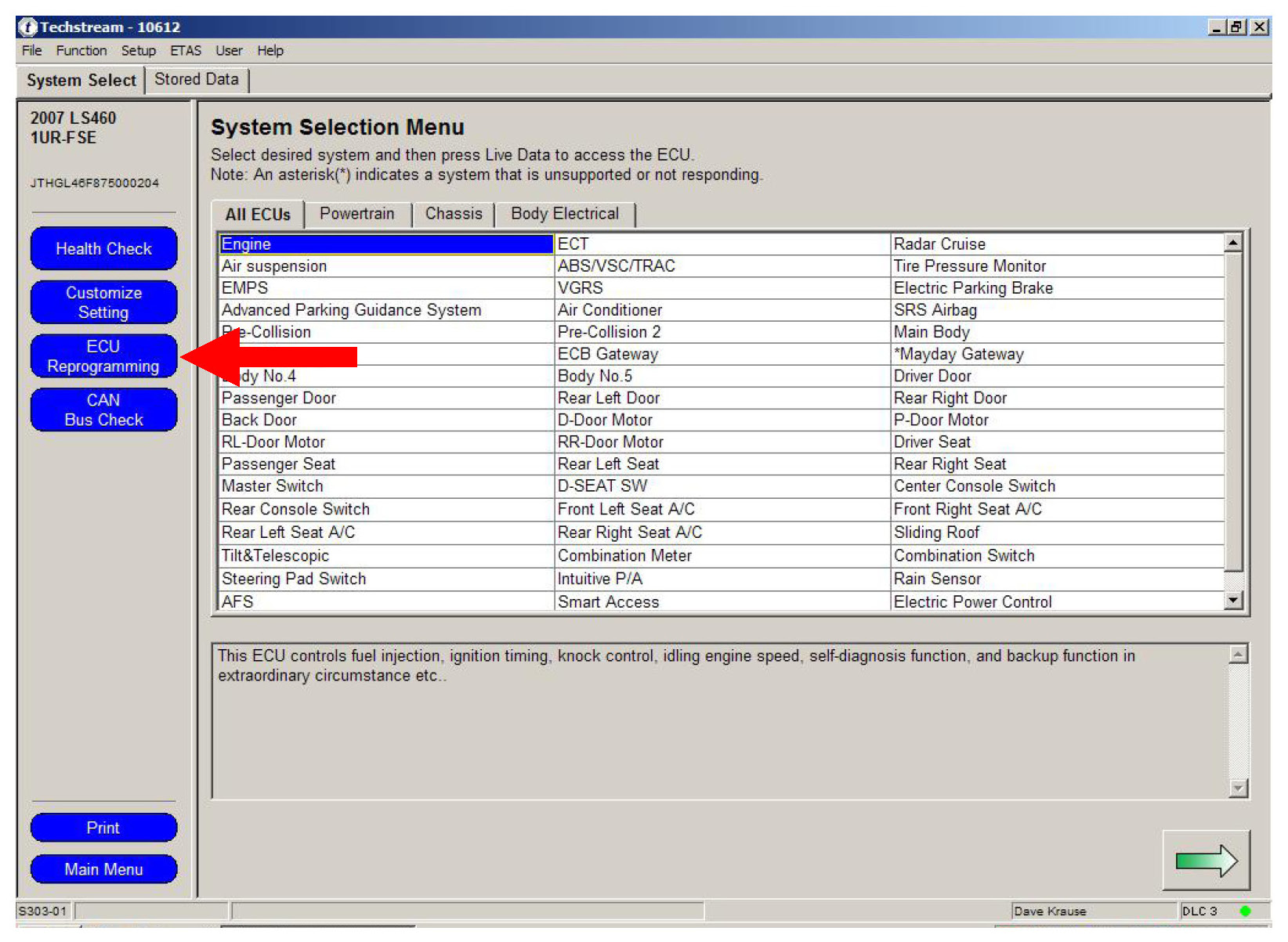 The following steps describe how to properly flash reprogram an ECU using the Techstream diagnostic application.