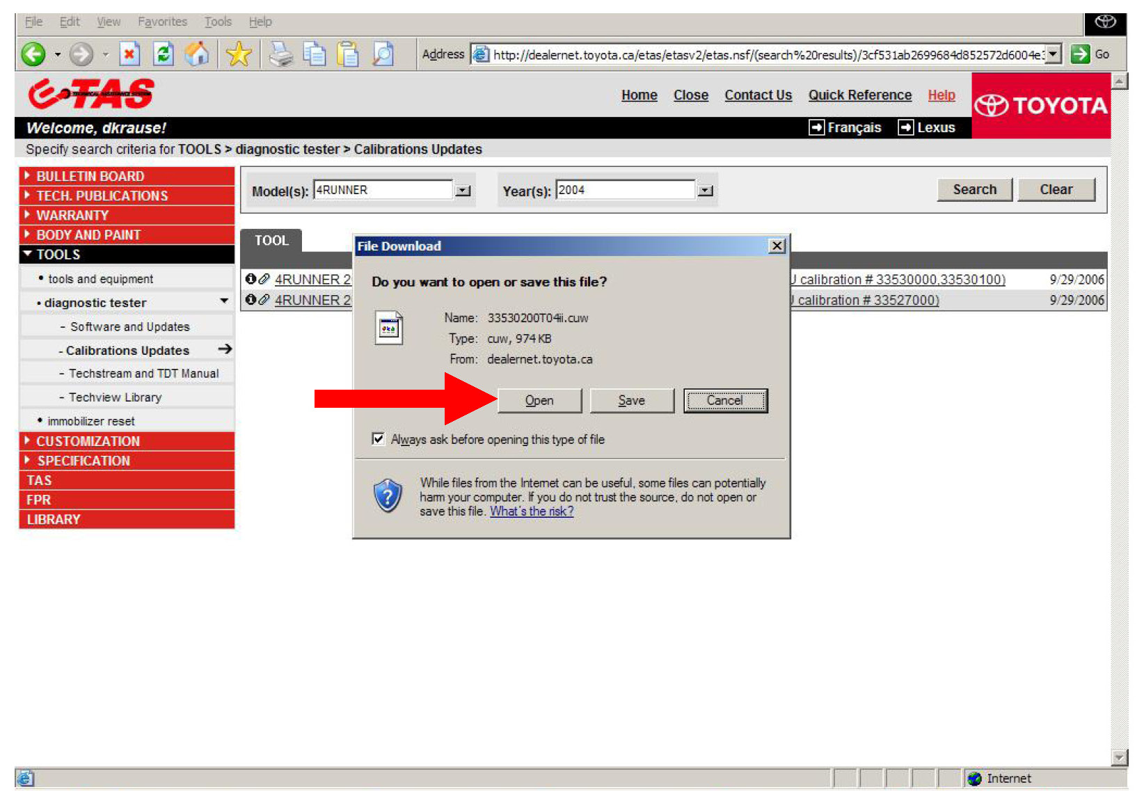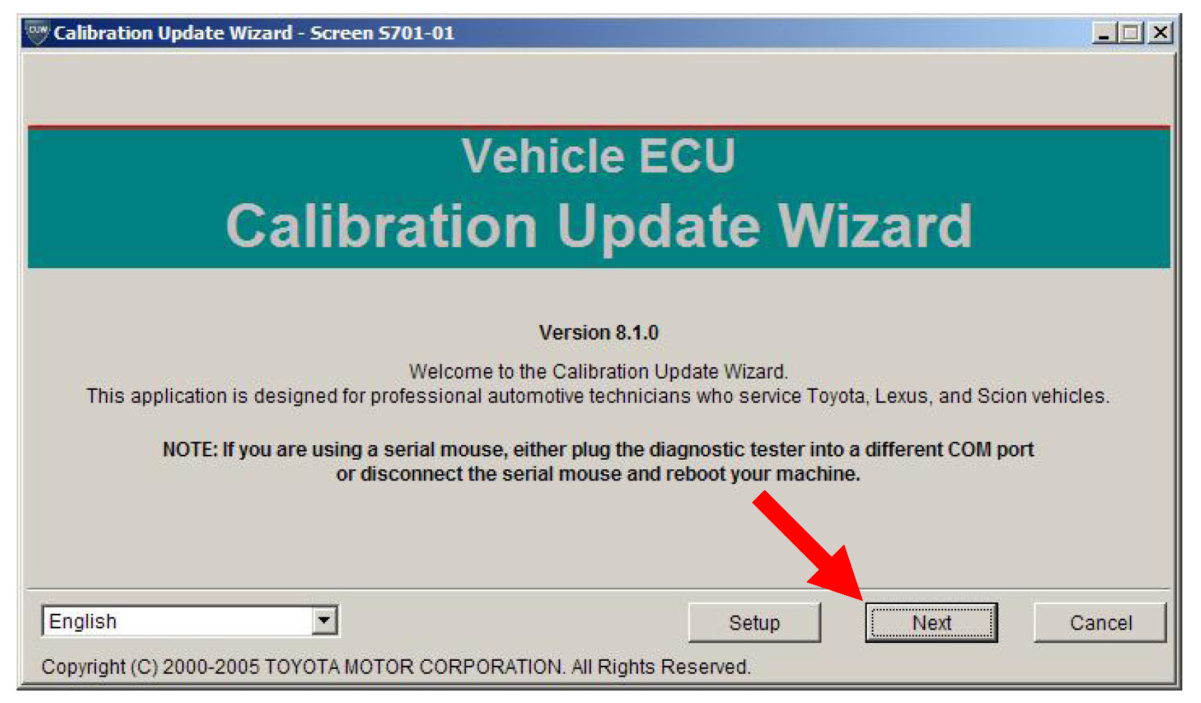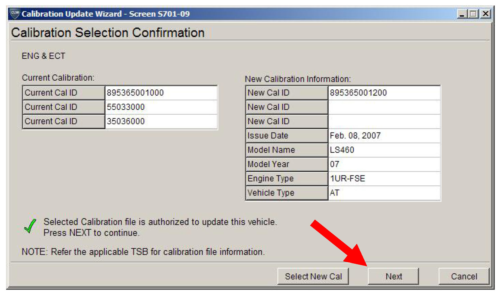 3. Locate appropriate calibration ID and reprogram the vehicle ECU with Techstream. Techstream uses the Calibration Update Wizard (CUW) application to open calibration files and facilitate the ECU flash reprogramming process.