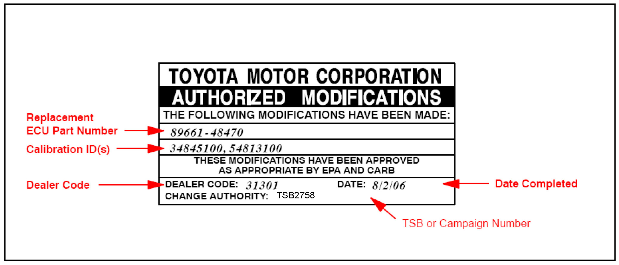 Modifications to ECU calibrations MUST be recorded and properly displayed on the vehicle using the Authorized Modification Label.