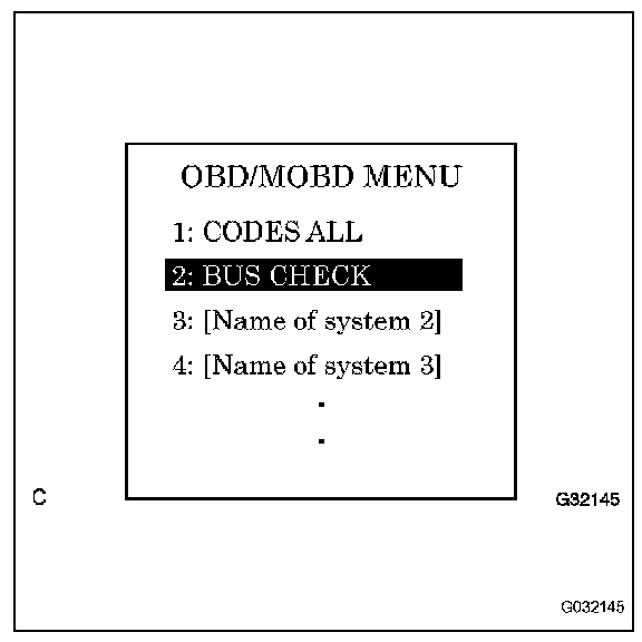 a. Select "BUS CHECK" from the "OBD/MOBD MENU" screen.