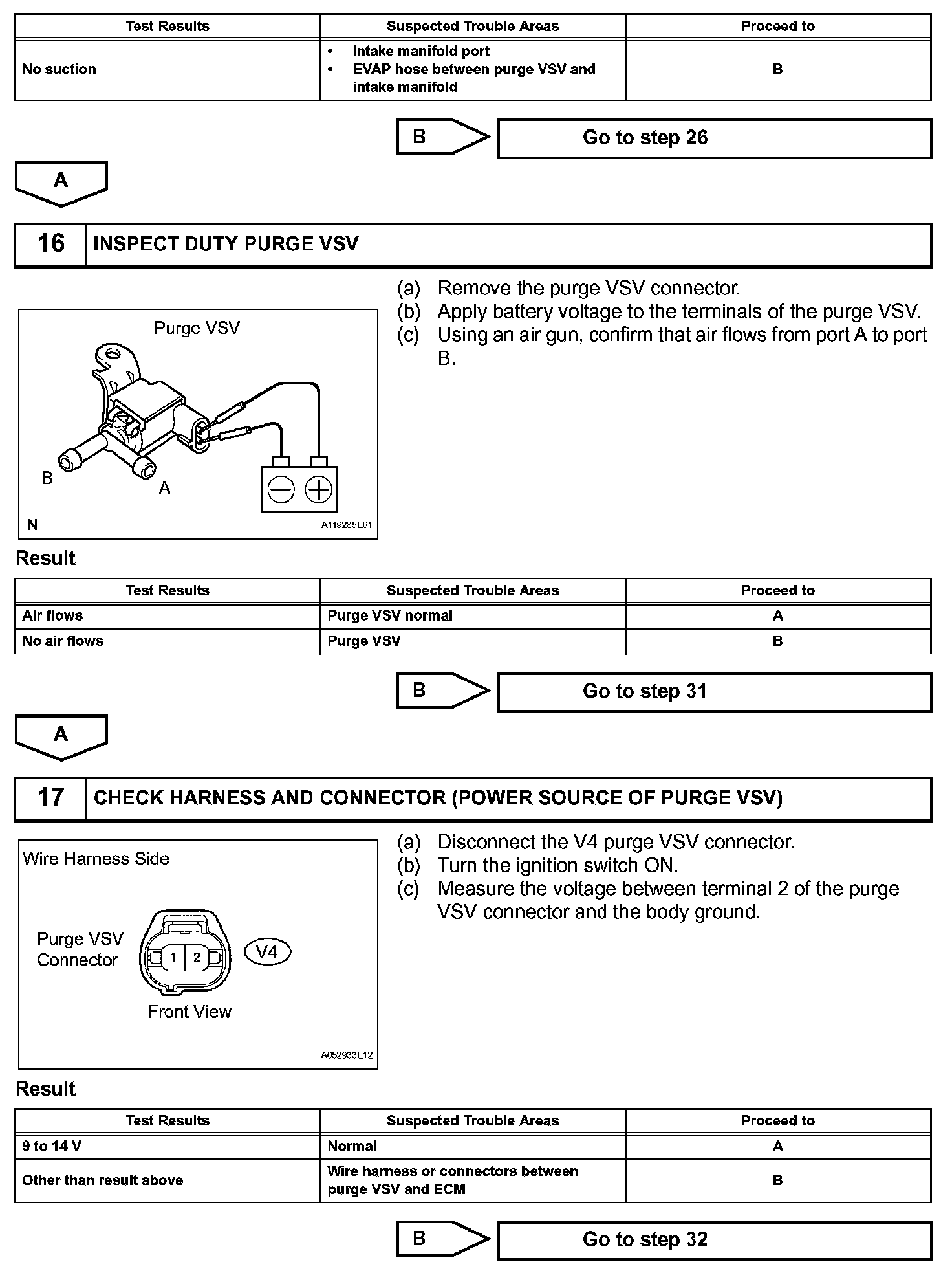 While the engine is running and the purge Vacuum Switching Valve (VSV) is ON (open), the ECM monitors the purge flow by measuring the EVAP pressure change. If negative pressure is not created, the ECM begins the 2nd monitor.